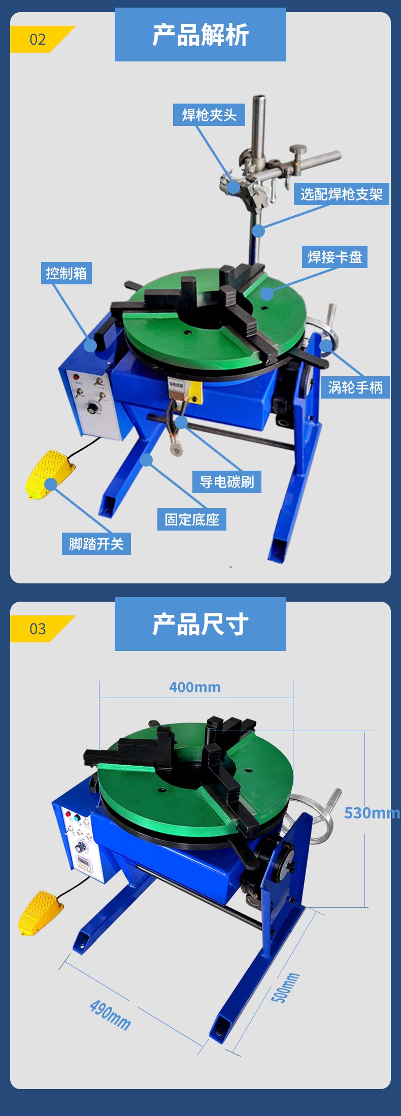 控制箱能通過旋鈕無極調(diào)速,可配置焊槍支架和氣動頂針,保證焊縫同心旋轉(zhuǎn)