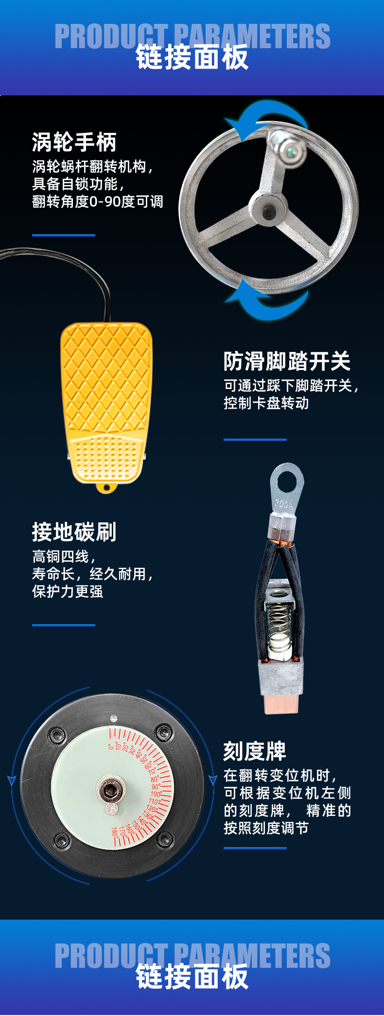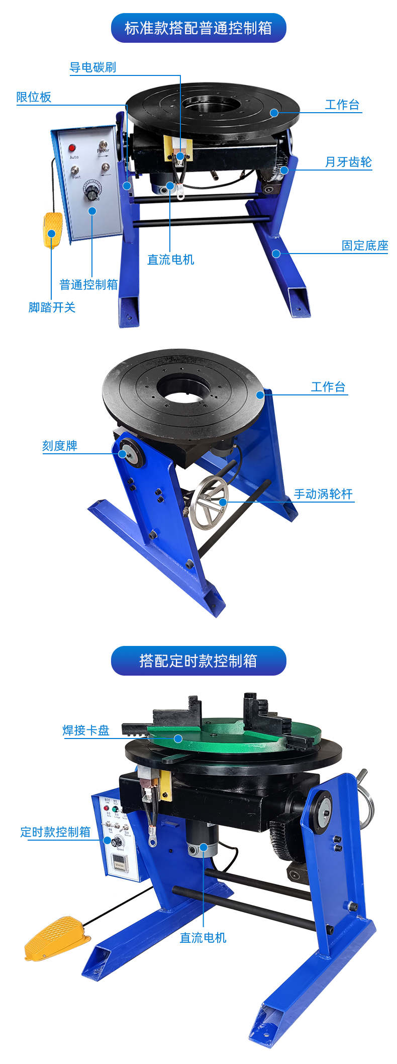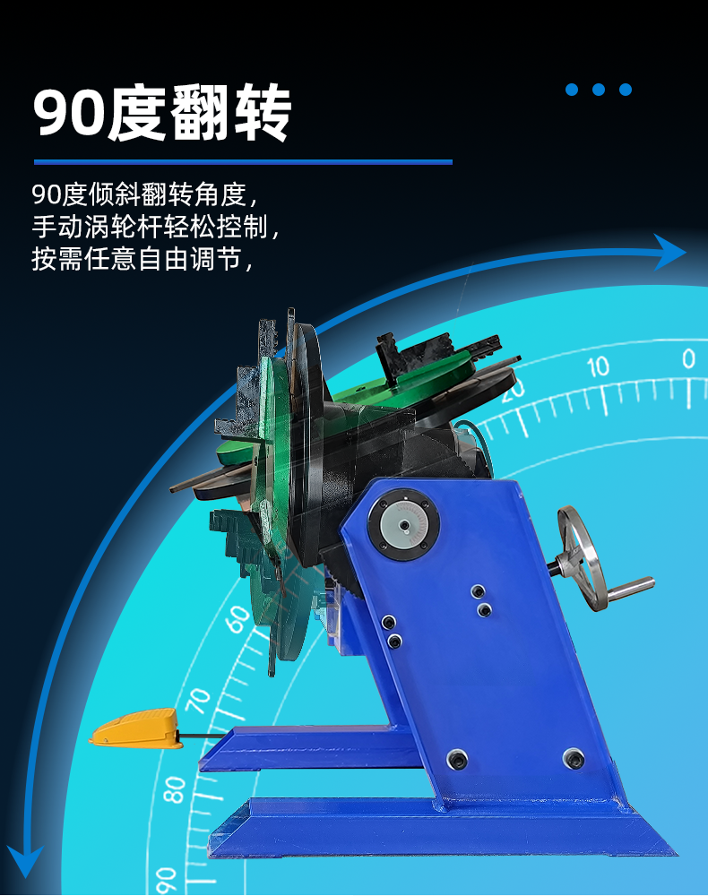 鑫浩焊接變位機(jī)可實(shí)現(xiàn)卡盤的快速加緊,通過手搖蝸桿可以使工作臺(tái)