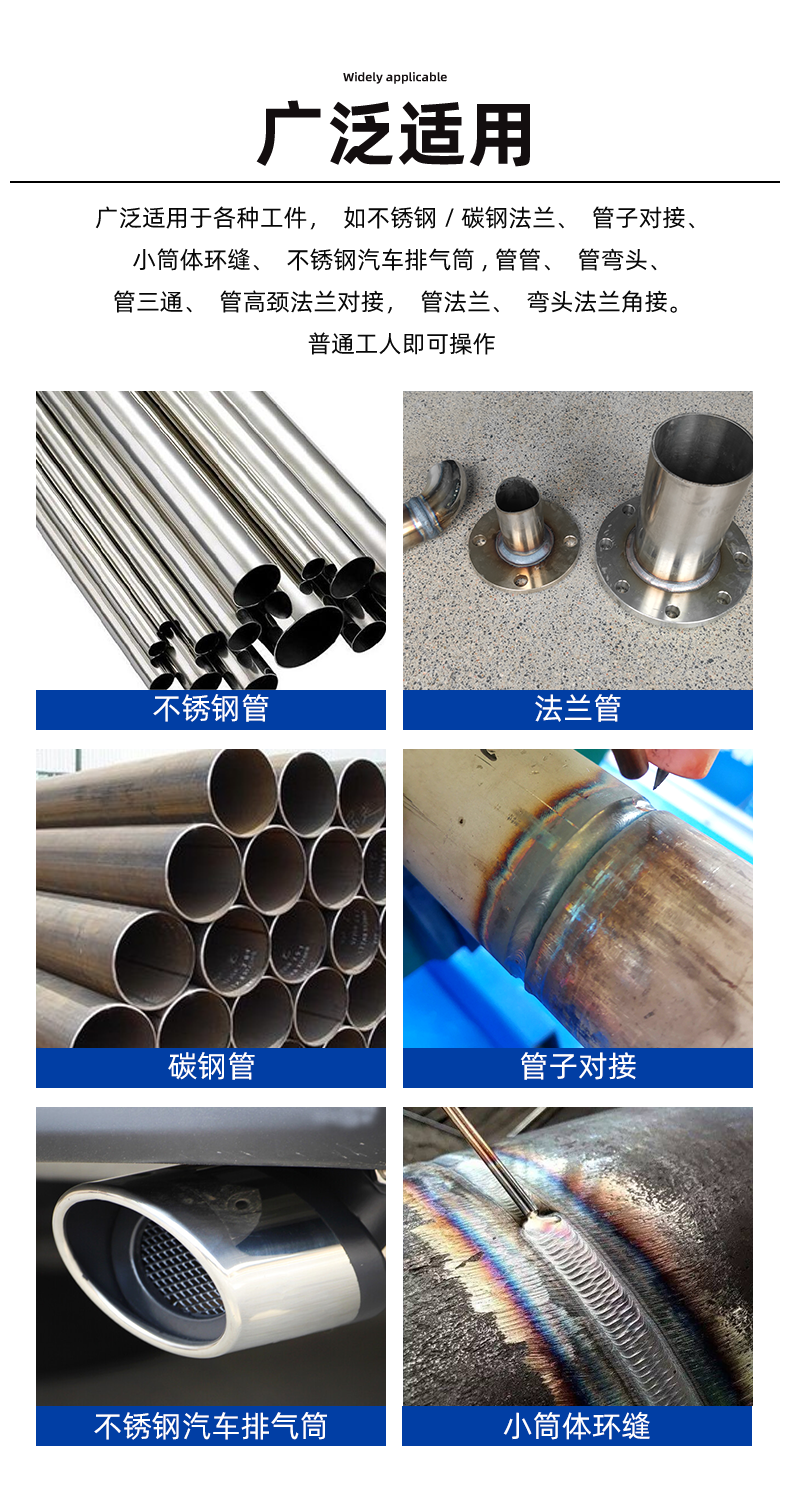 性價(jià)比高等特點(diǎn),可焊接不銹鋼/碳鋼法蘭、管子對(duì)接、小筒體環(huán)縫、不銹鋼汽車排氣筒等,